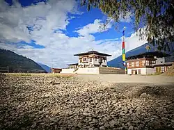 Paro (Dzongkha: སྤ་རོ་) is a town and seat of Paro District, in the Paro Valley of Bhutan.[1] It is an historic town with many sacred sites and historical buildings scattered throughout the area. It is also home to Paro International Airport, Bhutan's sole international airport. Paro Airport is served by Bhutan Airlines and Drukair.