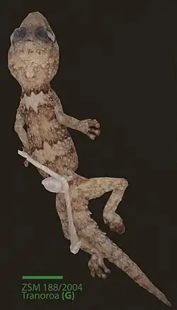 - ^ a b Nussbaum, R.; Raxworthy, C. (2000). "Systematic revision of the genus Paroedura Gnther (Reptilia: Squamata: Gekkonidae), with the description of five new species". Miscellaneous Publications (Museum of Zoology, University of Michigan). 189: 1–26. S2CID 83107193.
