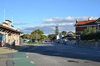 Near the corner of Parry Street and Quarry Street is the Fremantle Substation, which was built in 1932 as a power station for the Fremantle Municipal Tramway network.[1] It was taken over by the State Energy Commission of Western Australia when the trams were decommissioned in 1952, and operated as an energy-themed museum from 1989 to 2009, before being sold into private ownership at the latter date. Private residential apartments are planned for the site, with the original building exterior being mostly retained.[1]