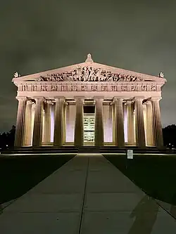 ![]() The Parthenon in Nashville's Centennial Park is a full-scale copy of the original Parthenon in Athens. | |