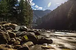 Parvati River is a river in the Parvati Valley in Himachal Pradesh, northern India that flows into the Beas River at Bhuntar, some 10 km south of Kullu. It rises from the Man Talai Glacier below the Pin Parbati Pass and flows in a gradual curve from north-northwest to west-southwest past the important temple town of Manikaran.[1]
