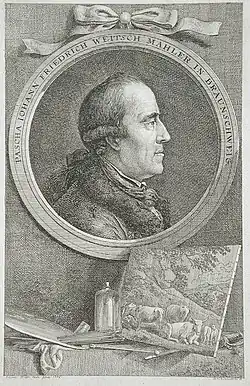 Pascha Johann Friedrich Weitsch (16 October 1723, Hessendamm, between Hesse and Mattierzoll - 6 August 1803, Salzdahlum) was a German landscape painter and illustrator. His unusual first name was not a nickname derived from the Turkish word "Pasha", as is often stated. It came from his godfather, Pasche Wipperling, and was an abbreviation of "Paschalis".[1][2]