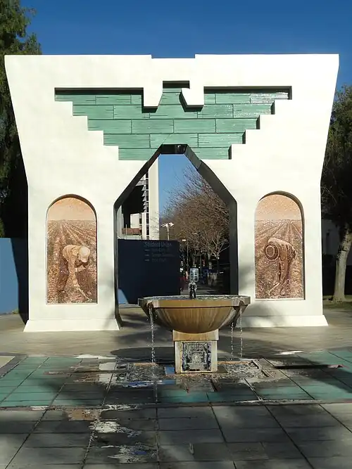 Paseo de César Chávez was laid out to serve as the primary north-south pedestrian axis through San Jose State University's campus.[2] Because of the Diaz Compean Student Union, it has become an important focal point for events and gatherings on the SJSU campus.[3]