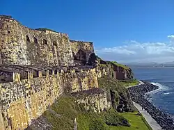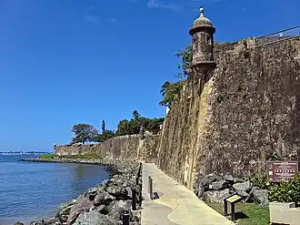 Paseo del Morro (English: Morro Promenade), is a waterside, riprap-lined, and breakwater-protected pedestrian promenade about 1.5 miles (2.4 km) in length, located in the historic district of Old San Juan in Puerto Rico. Built in 1999 as an extension of an existing 18th-century maintenance walkway on the southwestern section of the wall located on the final stretch of Paseo de la Princesa (Princess Promenade), the promenade is a contemporary construction running adjacent and parallel to the western section of the Walls of Old San Juan, which originally stood directly exposed to the waters of San Juan Bay. It was designated a National Recreational Trail in 2001.[1][2]