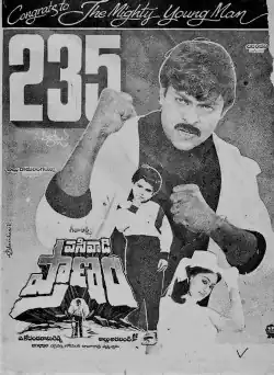 This movie was Chiranjeevi's first silver-jubilee hit. It had a 175-day run in Prathap theatre with daily 5 shows (still the record), in Tirupathi. In those days, a Telugu movie running for more than 100 days with four daily shows was difficult due to the introduction of the slab system by AP State govt. In 1984. This film set record of a Telugu movie has a run of 100 days with five shows per day in 3 centres (Tirupati, Nellore, Anathapur). Previously another Telugu movie ran in 2 centres for 100 days with 5 shows per a day (Tirupati, Anathapur) before introducing of Slab system.[6] It became the first South Indian movie to be dubbed into Russian language. In 1982, Russian people enjoyed the dance of Mithun Chakraborty in Disco Dancer. Again, in 1987, they felt the same with Chiranjeevi's dance. . Due to the influence of this film, later, Chiranjeevi and K.Viswanath's "Swayamkrushi" was also dubbed into Russian language.