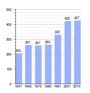 | demographic vertical bar chart of between 1947 and 2010 |