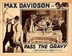 Pass the Gravy is a 1928 short comedy silent film directed by Fred Guiol and supervised by Leo McCarey. It stars Max Davidson, Gene Morgan, Spec O'Donnell, Martha Sleeper, and Bert Sprotte. The movie was produced by Hal Roach and distributed by Metro-Goldwyn-Mayer Distributing Corporation. In 1998, the film was deemed "culturally significant" by the Library of Congress and selected for preservation in the United States National Film Registry.[1][2][3]