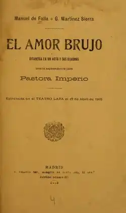 Her fame as an artist came when she starred in the premiere of El amor brujo, by Manuel de Falla, on April 15, 1915, at the Teatro Lara in Madrid, and all thanks to Jacinto Benavente, who contacted Manuel de Falla.