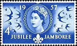 The 1957 4d World Scout Jubilee Jamboree stamp designed by Keely.