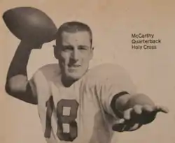 Patrick L. McCarthy (born c. 1939) is a former American football quarterback for the Holy Cross Crusaders. He was the Crusaders' starting quarterback on 1960, 1961, and 1962. As a junior in 1961, he ranked second in the country with 1,509 yards off total offense. He also set Holy Cross records for total offense in a season (1,721 yards in 1962) total offense in a career (4,534 yards). He also established NCAA records for two-point conversions scored (13) and two-point conversion passes (19). He was inducted into the Holy Cross Hall of Fame in 1971.[1]
