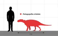 Patagopelta (meaning "Patagonian shield") is an extinct genus of ankylosaurian dinosaur from the Late Cretaceous (upper Campanian–lower Maastrichtian) Allen Formation of Argentina. The genus contains a single species, P. cristata, known from a partial skeleton. While originally described as a nodosaurine, later discoveries provided support for parankylosaurian affinities for the taxon. Patagopelta is a very small ankylosaur, comparable in size to the dwarf nodosaurid Struthiosaurus, about 2 m (6.6 ft) long.
