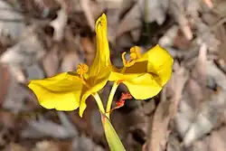 Patersonia umbrosa, commonly known as yellow flags,[2] is a species of plant in the iris family Iridaceae and is endemic to the south-west of Western Australia. It is a loosely-tufted, rhizome-forming, perennial herb with linear to sword-shaped leaves and deep bluish-violet or bright yellow tepals.