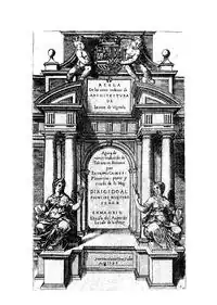 Frontispice of the Spanish edition of The Five Orders of Architecture by Vignola, engraved by Caxés.