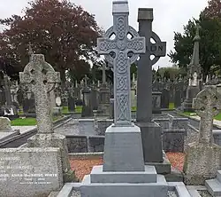 Harte, MacGrath and Hunt were tried by Military Tribunal, established under the Emergency Powers Act 1939. All three men were represented in court by the future Nobel Peace Prize winner Seán MacBride. They challenged the legislation in the Irish High Court, seeking a writ of habeas corpus, and ultimately appealed to the Irish Supreme Court. The appeal was unsuccessful (at that time there was no right to appeal the findings of a Military Tribunal) and Harte and MacGrath were executed by firing squad at Dublin's Mountjoy Prison on 6 September 1940 (22 days after the shooting).[25] MacGrath was buried in an unmarked grave in the prison yard. In 1948 his remains were released to his family, he is buried in Glasnevin Cemetery next to the graves of Seán MacBride and the Irish republican revolutionary Maud Gonne.[26] Speaking at his reburial, a founding member of Sinn Féin Brian O'Higgins stated how attitudes towards Irish Republicans had changed: "The men were put to death as criminals, outlaws, enemies, of Ireland. Today that judgement is reversed even by those who were and are opponents and they have been acknowledged to be what we have always claimed them to have been - true comrades of Tone and Emmet."[27]