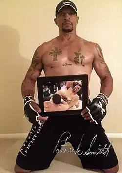 Smith participated the first Ultimate Fighting Championship event, UFC 1, in November 1993. The event featured an eight-man single-elimination tournament with very few rules, awarding $50,000 to the winner. Art Davie, the promoter, placed advertisements in martial arts magazines and sent letters to anyone in any martial arts directory he could find to recruit competitors for the event.[5] With the event being held in Smith's hometown of Denver, he was an easy addition.[6] Smith's first and only match was against shoot wrestler Ken Shamrock, who took Smith down easily and submitted him with a heel hook. The fans in Denver booed heavily as they were unaware of the submission rules and were displeased with the fact that the match ended so quickly without a knockout.