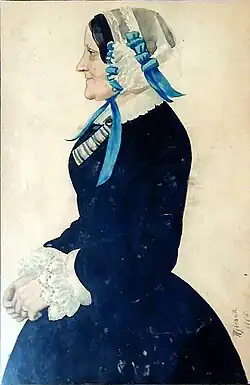 Several American art dealers and commentators have incorrectly identified him as having been a Native American. A typical Wybrant painting is a portrait, a profile view done in watercolour, signed "Wybrant Artist" and dated in numerals. Little information has been published about Wybrant on the internet; what exists tends to be spurious copy devised to promote sales of the portraits. His paintings have value for those interested in 19th century fashion.[2][3]