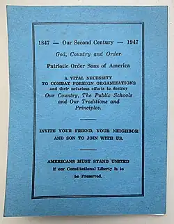 - ^ State Camp of Pennsylvania and Subordinate Camp Constitution Preceded by the National Camp Constitution and General Laws of the Patriotic Order of Sons of America (Philadelphia: P.O.S.A, 1945, pp. 5-7.
