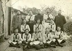 In 1895, Abbot Gaston Simard de Pitray, a Sulpician, founded a football team that he placed under the patronage of Jean-Jacques Olier, priest of Saint-Sulpice, in 1641, hence its name as Patronage Olier.[1] Being one of the many Catholic clubs affiliated with the Gymnastic and Sports Federation of French Patronages (FGSPF), Patronage Olier won the FGSPF Football Championship in 1908, beating Cadets de Bretagne 8–0 in the final held in Rennes on 26 April.[2] This victory allowed the club to compete in the 1908 Trophée de France, in which they defeated the Bordeaux champion of FASO (Montrepos Athletic Society) in the semifinals by a score of 12–2.[3] In the final on 3 May 1908, Patronage Olier defeated the Parisian champion of the FCAF, the SM de Puteaux, by a score of 3–0, with goals scored by Carlier, Bienvenu and Eugène Maës.[4]