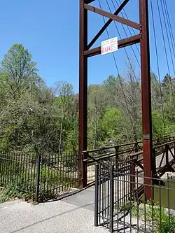 The Patterson Viaduct was built by the Baltimore and Ohio Railroad (B&O) as part of its Old Main Line during May to December 1829. The viaduct spanned the Patapsco River at Ilchester, Maryland. It was heavily damaged by a flood in 1868 and subsequently replaced with other structures.[2] In 2006, it was restored to limited service when a footbridge was built atop the surviving arch and abutments.