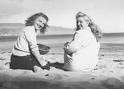 Patty Thomas and Frances Langford in 1944 on a South Pacific beach, a Naval Base on the Bob Hope USO tour.