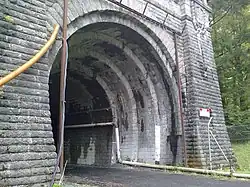 Opened and electrified in 1928, it was closed south of Bedous, France, after a major derailment accident on 27 March 1970, which destroyed the L'Estanguet bridge south of Accous.[1] North of Bedous, the line was closed up to Oloron-Sainte-Marie to passengers on 30 May 1980, although it remained open for freight traffic until 1985. In August 2014, the French state railway company SNCF began work on a project to reopen this section, which happened on 1 July 2016.[2]