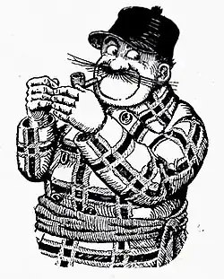 At the same time, several authors have come forward to propose that the legend of Paul Bunyan was based on a real person. D. Laurence Rogers and others have suggested a possible connection between Paul Bunyan tales and the exploits of French-Canadian lumberjack Fabian "Saginaw Joe" Fournier (1845–1875).[30] From 1865 to 1875, Fournier worked for the H. M. Loud Company in the Grayling, Michigan, area.[5] James Stevens in his 1925 book Paul Bunyan makes another unverified claim that Paul Bunyan was a soldier in the Papineau Rebellion named Paul Bon Jean,[31] and this is occasionally repeated in other accounts.