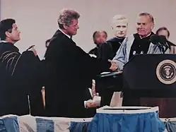 Hardin was hired to lead UNC into its third century, first by spearheading the largest capital campaign in school history. He led the effort with his characteristic enthusiasm and gusto. In the end the campaign raised $440 million, well over its goal of $300 million. The Bicentennial Observance culminated in a University Day celebration in 1993, during which Hardin conferred an honorary degree upon President Bill Clinton. The 130 events of the Bicentennial Observance was chronicled by executive director Steven Tepper in a book published by the university in 1998.[8]