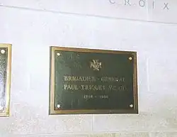 A memorial plaque was placed at Mount Royal Crematorium, Montreal, Quebec, Canada. His ashes are interred in the regimental memorial of the R22eR, Citadelle of Quebec. Triquet Island, off the west coast of British Columbia, is named in his honour. A statue of Triquet is one of 14 that comprise the Valiants Memorial in Confederation Square in Ottawa.
