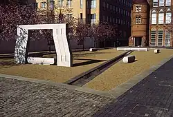 Oozells Square Sculptures, Brindleyplace, Birmingham (1998): Commissioned by Argent Development Consortium, this series of seven granite sculptures was designed to complement the 38m x 14m square, pre-designed by Townshend Landscape Architects.[3][4] The square was paved with consolidated ochre Raisby Gravel and featured a black granite diagonal rill, which is bridged by one of the sculptures. The project won a Civic Trust Award in 2000. In 2023, the square's original design was altered when the owners covered the surface with a 10 cm layer of loose white gravel.