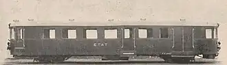 The prototype, designated Type 1, was presented to the press on October 27, 1931 during a trip between Bordeaux-Saint-Louis and Le Verdon.[10] The railcar leaves the Bordeaux-Saint-Louis station, following the express for the 100 km to Le Verdon. With stops in Bruges, Pauillac, Lesparre and Soulac-sur-Mer,[11] the journey takes 1 h 45. The return journey is an omnibus mission which, despite stopping at each of the 22 stations on the line, takes just 1 h 40, five minutes less than the express and almost half the time taken by the steam omnibus train to cover the same distance.[11]