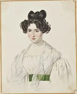 Mrs. Craven's family life was depicted in Le Récit d'une Sœur as especially tender and intimate. She suffered several severe bereavements in the years following her marriage. The Cravens lived abroad until 1851, the year in which Keppel Richard Craven died. His son's diplomatic career appeared unsuccessful. He stood unsuccessfully for election to Parliament for Dublin in 1852 after which he retired to private life. The family went to live in Naples in 1853. Mrs. Craven then began to write the history of the family life of the La Ferronnays between 1830 and 1836. Its focus was the love story of her brother Albert and his wife Alexandrine. This book, Le Récit d'une Sœur (1866, English translation 1868), was enthusiastically received and was awarded a prize by the French Academy.[1]