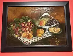 Powell's artwork is scarce, partly because of when she lived but also because she died at a young age.[2] She died at the age of 40 in 1912, of tuberculosis.[2] She is known to have painted landscapes and still lifes; surviving works include Champagne and Oysters (ca. 1890), Bulldogs, Still Life With Fruit (1890), Violets (oil on card, 1890), and a pair of watercolors, one of nasturtiums and the other of tulips, both of which are in the collection of Dunsmuir House in Oakland, California.[2][9][10][11][12] Violets is in the collection of the Smithsonian Institution's National Museum of African American History and Culture.[7][13]