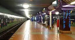 The Paulsternstraße is also a street in Berlin, Spandau. The walls are covered with pictures of flowers, grass and sunpatterns. The ceiling is also covered with stars. The next station is Rohrdamm.[1]