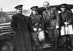 Pavel Ivanovich Batov (Russian: Па́вел Ива́нович Ба́тов; June 1 [O.S. May 20] 1897 – April 19, 1985)[1] was a senior Red Army general during the Second World War and afterwards, twice Hero of the Soviet Union. Batov fought in World War I, where he was awarded the Cross of St. George twice. After being wounded in 1917, he was sent to a school in Petrograd and joined the Bolsheviks. He fought in the Russian Civil War and became an advisor with the XII International Brigade during the Spanish Civil War. During World War II, Batov commanded the 51st Army in the Crimea. In 1942, he became the commander of the 3rd Army and then the 4th Tank Army, which was renamed the 65th Army. Postwar, Batov commanded the Carpathian Military District.[2]