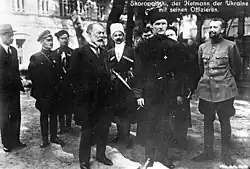 Pavlo Petrovych Skoropadskyi (Ukrainian: Павло Петрович Скоропадський; 15 May [O.S. 3 May] 1873 – 26 April 1945) was a Ukrainian[1] aristocrat, military and state leader,[2] who served as the hetman of the Ukrainian State throughout 1918 following a coup d'état in April 29 of the same year.