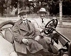 ![]() Still with Cecil Van Auker riding with director George L. Cox | |