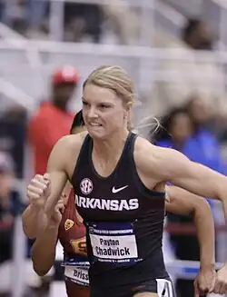 After spending her first year on the Oklahoma Sooners track and field team, she transferred to the Arkansas Razorbacks track and field program.[4] At the 2018 NCAA Division I Indoor Track and Field Championships, she won the 60 m hurdles, her first NCAA national title. She defeated Anna Cockrell for the win by just 0.004 seconds, with both runners setting personal bests in the final.[9]