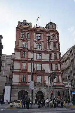 Sassoon House was the first high-rise building built by Victor Sassoon, and one of the first skyscrapers in the Eastern Hemisphere. Sassoon bought a full city block on a prominent spot on the Bund prior to construction.[3] When built the Sassoon House topped out at fifty feet taller than the next tallest building on the Bund.[3] It was designed by architects Palmer and Turner, with a reinforced concrete structure. Construction began in 1926, and was completed in 1929.[4]