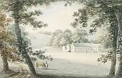John's third son Henry Hippisley Coxe (1748–1795) of Ston Easton Park, Somerset, was MP for Somerset from 1792 to 1795 and died childless. The Devon topographer Rev. John Swete visited the area in 1789 and made a sketch of Peamore, from which he made a watercolour painting in 1794. In 1789 he noted in his journal it was then the residence of Sam Strode, Esquire,[36] (died 29 August 1795),[37] lord of the manor and hundred of Crediton in 1790,[38] who had purchased a life-interest lease from Henry Hippisley Coxe. In 1789 Swete noted concerning Peamore: