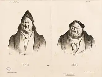 - ^ "Planche de la lithographie mensuelle" [Monthly lithograph board]. La Caricature (in French). April 17, 1834. Archived from the original on October 17, 2021.