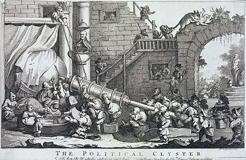 David Kerr notes that the various meanings attributed to the clyster are characteristic of La Caricature's collaborative nature, with the metaphor evolving from traditional scatological and sexual associations to also represent the political regime of the July Monarchy.[209][195]