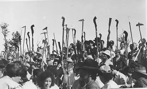 The peasant leagues (Portuguese: ligas camponesas) were social organizations composed of sharecroppers, subsistence farmers and other small agriculturalists. They originated in the agreste region of Northeastern Brazil in the 1950s, organized by the Brazilian Communist Party (PCB),[1] and were later picked up by Francisco Julião, a member of the Democratic Labor Party (PDT) and other socialists. The leagues were founded to improve rural workers' living standards; their later objective was to oppose the region's power of latifundia.[2]