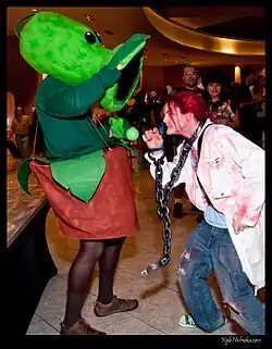 • In the video game Plants vs. Zombies, there is a character called the Peashooter who attacks zombies with peas.[3]