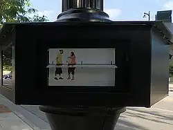 Pedestrian Drama is a site-specific public art work by American artist Janet Zweig, located on the east end of Wisconsin Avenue in downtown Milwaukee, Wisconsin.[1] The artwork consists of a series of mechanical flaps, like signage associated with public transportation, that present animated narratives.[2] The mechanical flap displays are installed on five kiosks on existing light poles.[3]