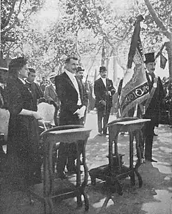 In 1897 Llosas was elected to the Olot ayuntamiento,[47] becoming the third teniente de alcalde,[48] president of Comisión de Gobernación and member of the other two.[49] During the following term[50] he grew to the first teniente de alcalde, president of Comisión de Fomento and vocal of the central, hospital[51] and economy[52] commissions, in 1900 briefly serving as alcalde.[53] In 1903 Llosas presented his candidature to the provincial self-government of Girona; he stood as a "regionalista".[54] Elected from the Olot-Puigcerda district, he served as diputado until 1907.[55] In the provincial self-government he represented a Traditionalist version of regionalism, declaring himself a Catalanist and anti-centralist;[56] his opening address in the chamber was in Catalan, an extravaganza which earned him admonition by the president.[57] As member of diputación he inspired and supported a new Olot Traditionalist periodical, La Tradició Catalana.[58] At that time he also published pamphlets formatted as discourses on political philosophy.[59]