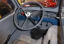 The Peel P50 is a three-wheeled microcar originally made from 1962 to 1965 by the Peel Engineering Company on the Isle of Man, and then from 2010 to present. It was listed in the 2010 Guinness World Records as the smallest production car ever made.[4] The original model has no reverse gear, but a handle at the rear allows the very lightweight car to be maneuvered physically when required.