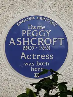 - ^ "Dame Peggy Ashcroft commemorated with a blue plaque". English Heritage. Retrieved 26 June 2024.