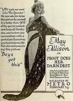 Peggy Does Her Darndest is a lost[1] 1919 silent film comedy directed by George D. Baker and starring May Allison.[2] It was produced and distributed by Metro Pictures.