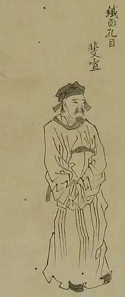 Pei Xuan is a fictional character in Water Margin, one of the Four Great Classical Novels in Chinese literature. Nicknamed "Iron Faced Magistrate's Scribe", he ranks 47th among the 108 Stars of Destiny and 11th among the 72 Earthly Fiends.