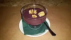 Pelamushi (Georgian: ფელამუში, pronounced [pʰeɫamuʃi]) or tatara (Georgian: თათარა) is a Georgian[1][2] dessert porridge commonly made in autumn, composed of a thick, hard chilled jelly made from grape juice and flour. Pelamushi is usually served with peeled nuts or gozinaki.